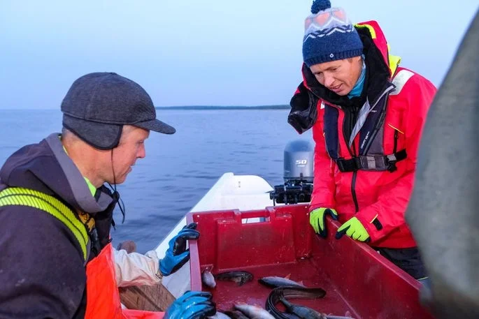 Täna varahommikul, enne päikesetõusu sõitsid kutselised kalurid Tarmo Luks ja Raio Piiroja Pärnu lahele võrke tühjendama. Sel korral ühines nendega Pärnumaal tööd tegev president Kersti Kaljulaid.